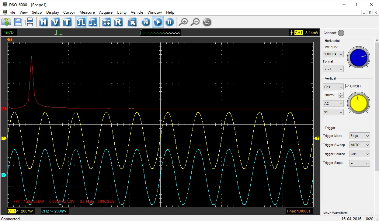 Fit for the portable computers, table PC, and suitable for wild mobile use and business trip use. Support WIN10/ WIN8/WIN7 etc. USB 2.0 interface plug and play, and no need extra power supply; Great function, More than 20 kinds of automatic measurement function, PASS/FAIL Check function. Resourceful trigger function, dynamic cursor tracking, waveform record and replay function. Good mechanical design with small size which is easy for carrying. The outer case is made by the same material with iPad - Anodised aluminium. It has great heat resistance and abrasive resistance with beautiful appearance. The hardness of aluminium alloy surface is greatly improved. 4 isolated channels oscilloscope, 1GSa/s real time sampling rate, 2mV-10V/DIV high input sensitivity and large input range, 70MHz high bandwidth, The waveform data could be output to EXCEL,BMP,JPG. Waveform averaging, afterglow, lightness control, reverse, add, subtract, multiply, divide, X-Y display. FFT spectrum analyzer One computer could connect with multiple oscilloscopes, expand the channel number easily. Provide secondary development library DLL; Provide Labview\VB\VC\QT developing examples.