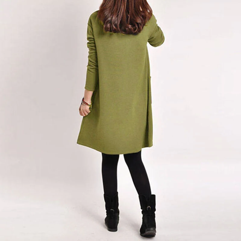 This loose dress features brief solid color with V neck, long sleeves and front pockets. It will bring you a classic chic look. The soft fabric is comfortable when you slip into.