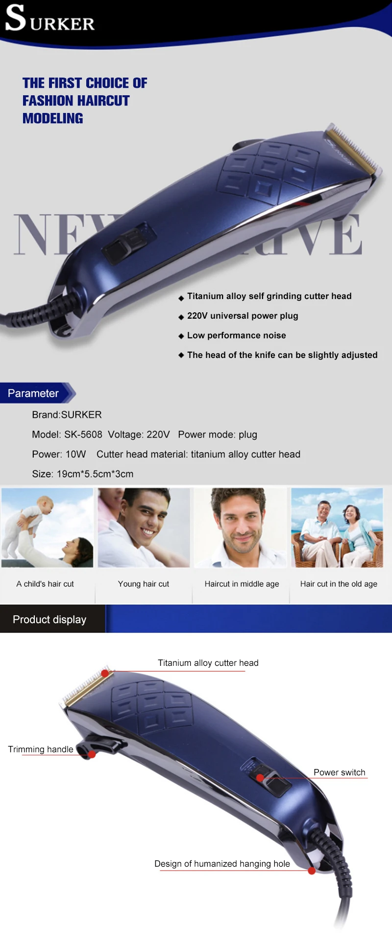 -Регулируемая длина головки машинки для стрижки волос