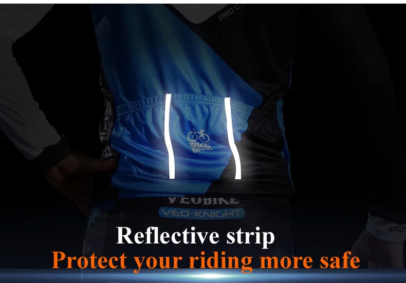 3 кармана сзади: Три кармана на спине велосипедной куртки, в которые можно положить бутылку с водой, телефон и т.д. Светоотражающая полоска: Светоотражающие полосы на середине кармана, 2 шт. Для большей безопасности при езде в ночное время.