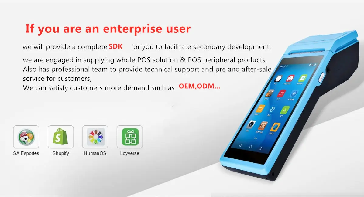 1. Интеллектуальное платежное терминальное устройство, функционирует такжеЧековый принтер, камера, поддержка 3G, Wi-Fi, BT4.0, 4 ГБ флеш-памяти NAND.