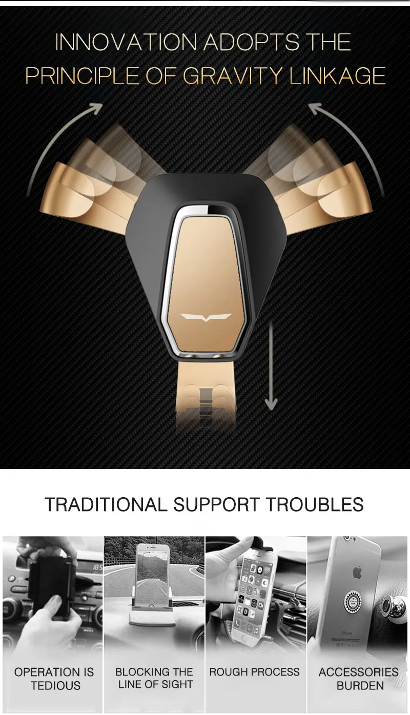 1) Положите телефон на держатель, и он будет автоматически зажимать. 2) Выньте телефон, когда будете готовы.