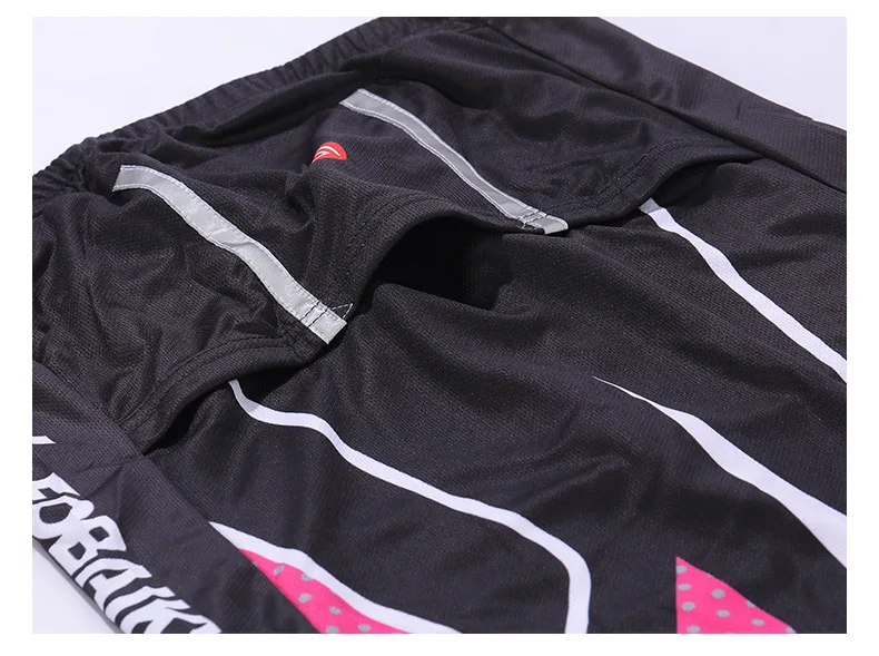 Нескользящая модель брюк: противоскользящая силиконовая лента внизу велосипедных шорт. Плотно прилегающие и удобные, делают езду быстрее и свободнее, даже если интенсивные упражнения, уменьшают сопротивление езде Светоотражающая молния: Светоотражающая молния сбоку на нижней части брюк. Сделайте вас безопаснее во время езды ночью