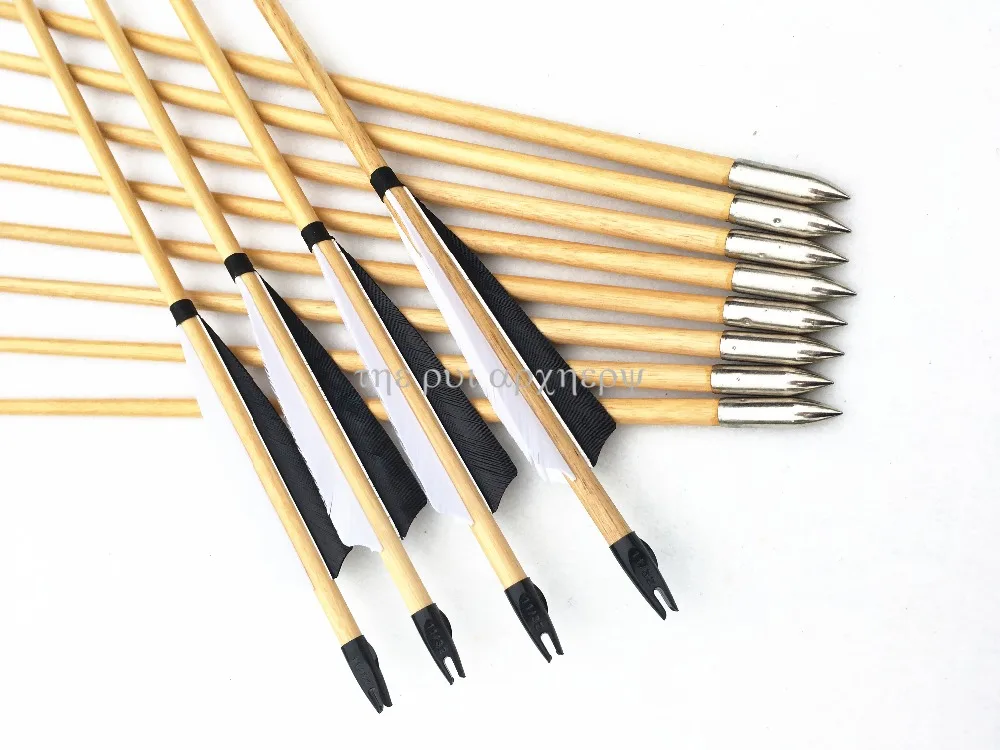 > Характеристики товара <1. Деревянный вал является чисто естественным, все сделано вручную, стремление к совершенству 2. Перо принимает турецкое Настоящее перо, которое не легко деформируется 3. С перьями в форме щита, точность стрельбы из лука высокая, а обтекаемые перья в форме капли воды делают стрельбу лететь быстрее и дальше 4. Высокое качество, подходит для стрельбы из лука в любом случае 5. Подходит для традиционного банта, прямого банта и длинного банта 6. Лучший выбор для охоты на открытом воздухе и стрельбы из лука