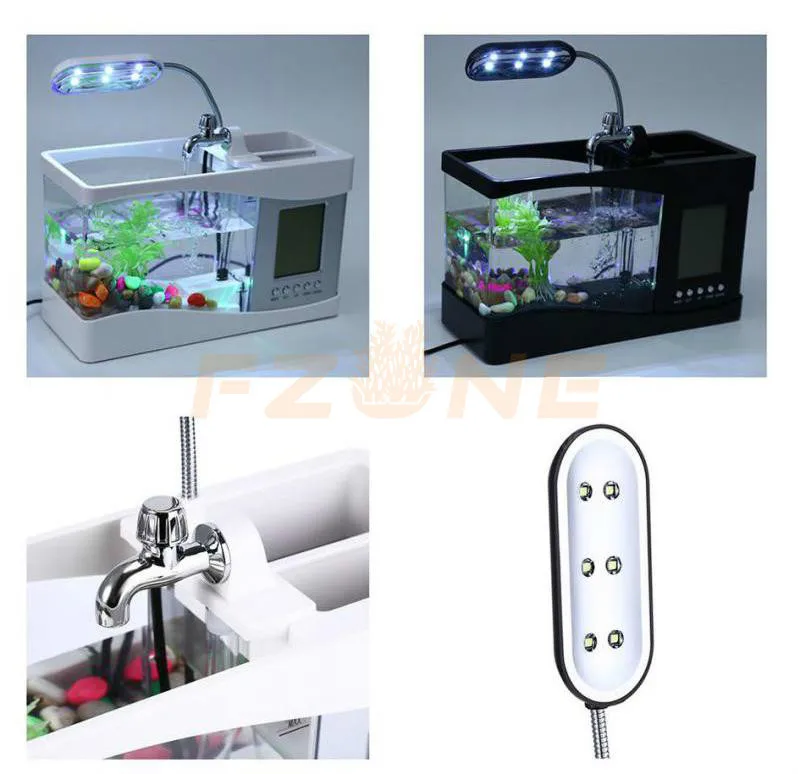 Материал: пластик (основной) и металл Батареи: 3 * батарейки AA (не входят в комплект) для ЖК-дисплея Питание от USB: 5 В постоянного тока для насоса и освещения аквариума Светодиодный светильник: 6 белый светодиодный s и 2 изменяющих цвет светодиодный s ЖК-дисплей: часы, календарь, будильник, температура Размер изделия: 24x14x 10 см Повод: спальня, дом, офис Креативный дизайн, Многофункциональность и надежное качество. Мини-аквариум с проточной водой (рециркуляция). Вода, хранящаяся в аквариуме, может циркулировать, что свежий воздух может быть обеспечен для рыб, которые живут в аквариуме. Удерживайте около 1,5 л воды. В комплекте декоративная галька, искусственное растение и usb-разъем. Регулируемый верхний светодиодный светильник и многоцветный светодиодный светильник для интерьера под водой. 2 выключателя используются для включения/выключения светодиодный светильник и включения/выключения водяного насоса. 6 режимов спокойных звуков природы. ЖК-дисплей с подсветкой оснащен будильником, календарем, временем, датой, температурой и повтором. Двухсекционный Настольный органайзер или держатель ручки для установки ручек, линейки и т. д. Отличный уникальный и необычный подарок для ваших друзей.Посылка включает:
