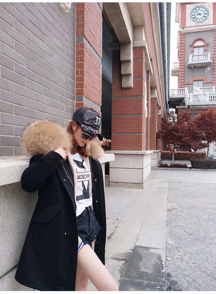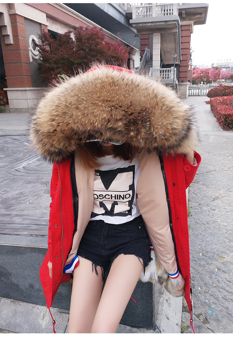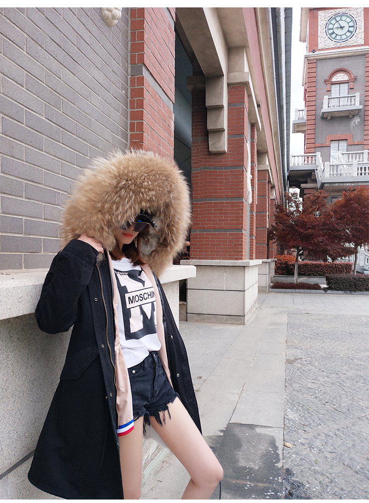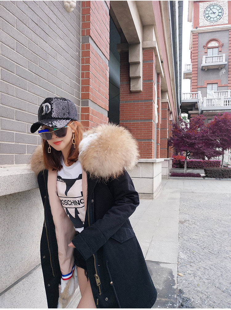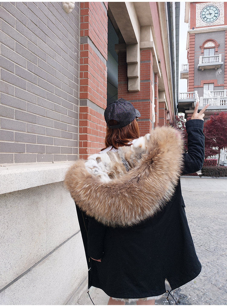 Воротник из натурального меха енота + подкладка из кроличьего меха + хлопок