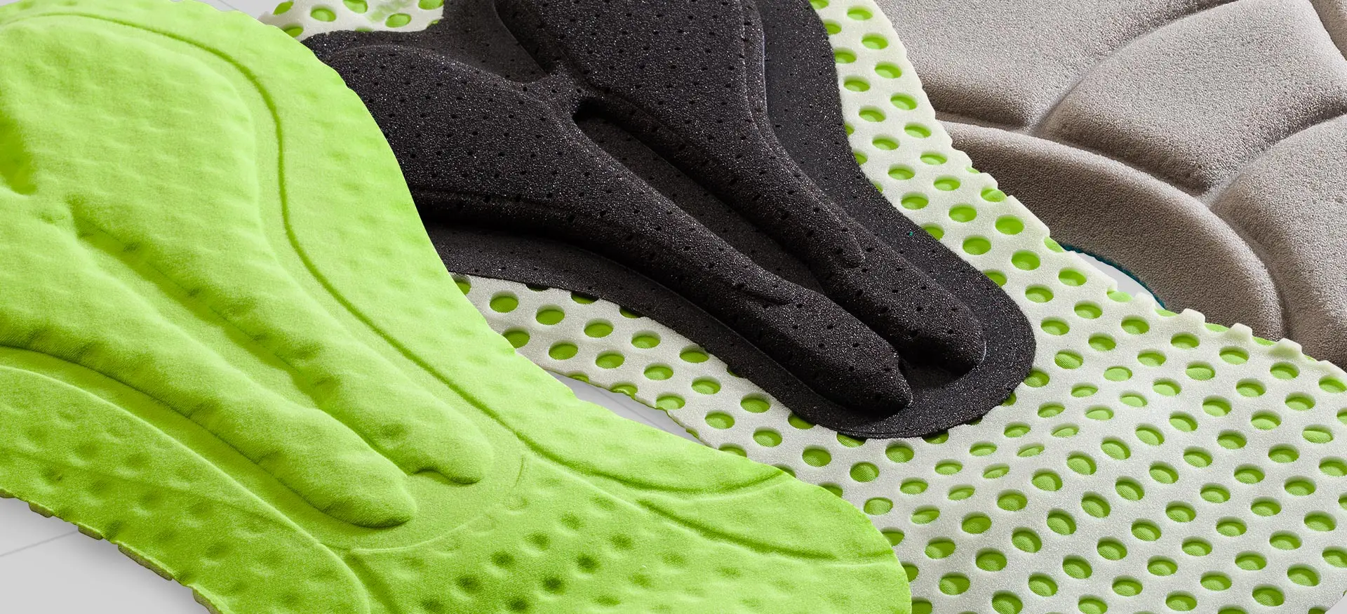 -Этот диапазон был разработан с открытой клеточной пеной 100 плотности (кг/м3) и толщиной 12 мм, что гарантирует отличную защиту во время езды на велосипеде. Перфорация пены с отверстиями 3 мм/8 мм, значительно увеличивает транспирацию и прохождение воздуха в прокладке, позволяя замшу высохнуть за меньшее время, чем другие традиционные продукты.