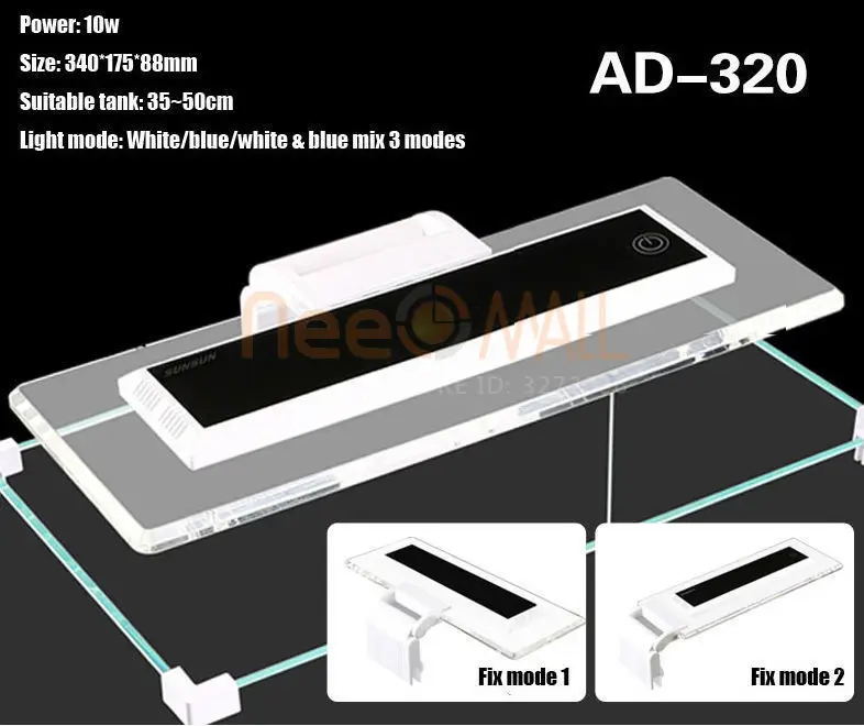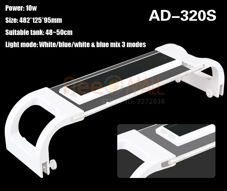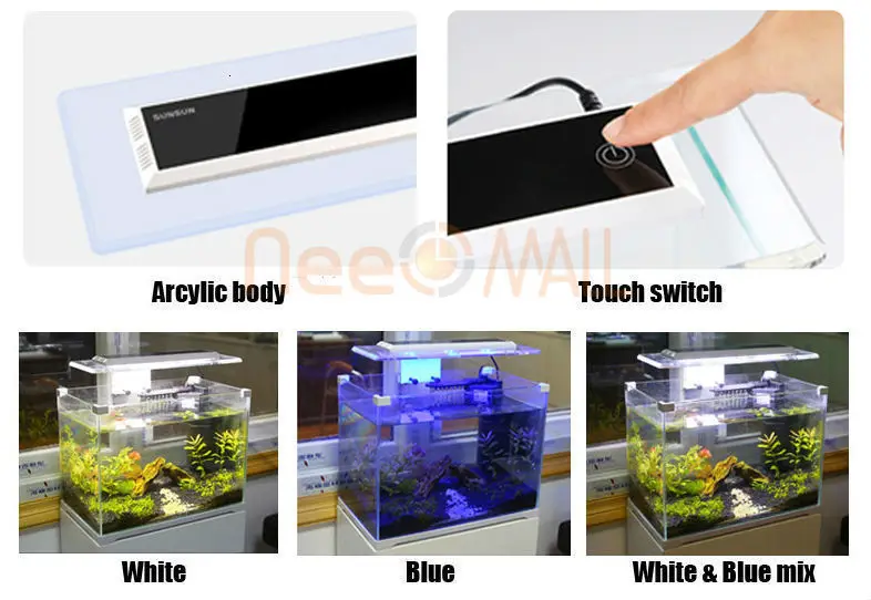 Это маленькая аквариумная лампа от известного китайского аквариума от производителя SUNSUN Group. Он имеет 2 цвета (белый, синий) для маленьких аквариумов (length35-50cm), Цветовая температура лампы: 10000 K-12000 K. Слайдер Swith 110В-240В мощностьУпаковка включает: