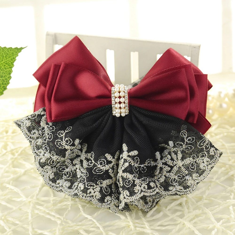 Women Lady Bow Barrette Hair Clip Lace Satin Cover Bowknot Net Bun Snood Hair Accessories Women Hairgrips 5 Colors Headwear