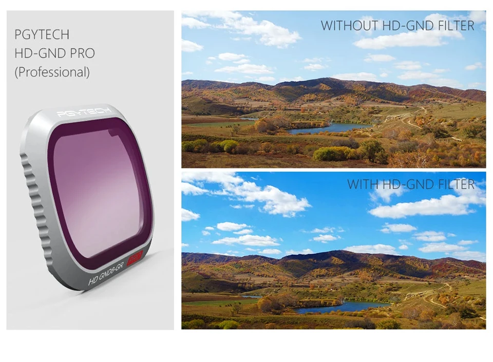 В области Дронов и аэрофотосъемки линзы дронов имеют ограничения на чувствительность и вес. PGYTECH создала включающую тройную работу ND и фильтр PL, весом всего 1,1g обеспечивает фотографа с длительное время экспозиции и устранение поляризованные светильник. Этот фильтр сочетает в себе лучшее из двух миров и является мощным инструментом для аэрофотосъемки и создания контента.