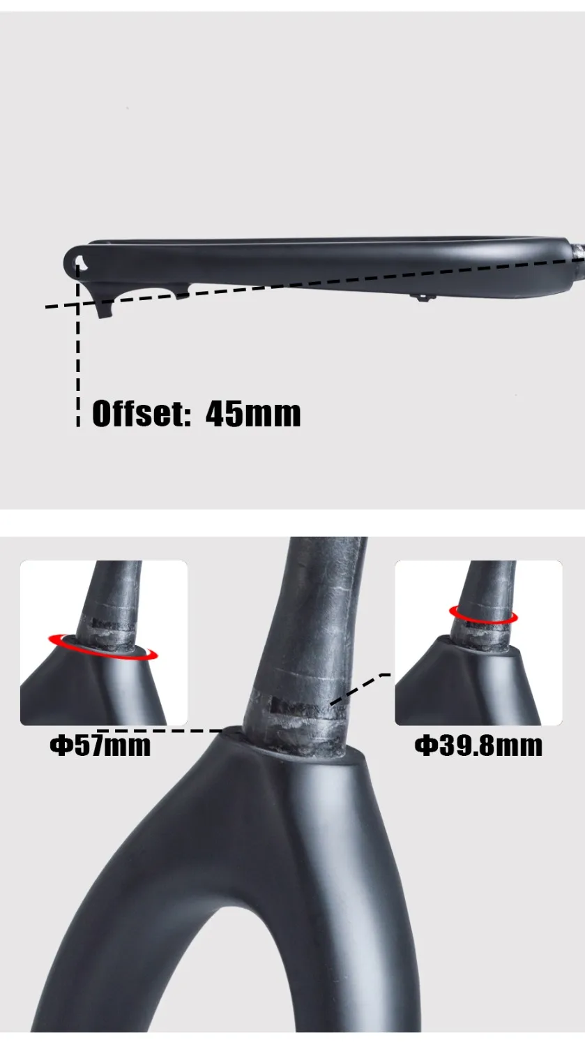Тип: полностью углеродистая вилка 29er MTB Boost; Материал: углеродное волокно T800; Смещение вилки: 45 мм; Подходит для ступицы: 110*15 мм; Подходит для диска: 160 мм; Подходит для шин: 29er,Max 3,0; Подходит для оправы: 29er, коническая головка трубки, Топ 1-1/8 (41,8 мм), вниз 1-1/2(52 мм); Вес: 638 +-20 г; Заказ содержит: вилку + сплав Thru Alex Quick + гарнитуру;
