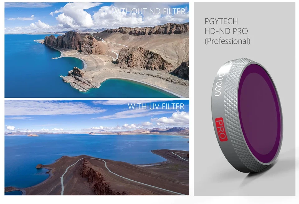 ND фильтр также называется уменьшающий светильник фильтр или фильтр нейтральной плотности уменьшает количество светильник в очень ярких условиях, чтобы камера могла выбрать правильное значение экспозиции и избежать чрезмерного воздействия. Это также улучшает насыщенность цвета изображения, делает изображение более Прозрачный и живой. Вы также можете использовать медленную скорость затвора для съемки некоторых специальных эффектов, таких как водяной туман, световая дорожка ночью и т. д. При съемке видео на прямом солнце вы можете уменьшить скорость выключения, вычитая объектив, чтобы видео имело соответствующее размытие движения и выглядело сбалансированно. Фильтр PGYTECH ND (Профессионал) использует немецкое стекло SCHOTT в качестве основного материала, несколько процессов шлифовки и полировки и технологию многослойного покрытия IAD для обеспечения высочайшей производительности и обеспечения высокого качества изображения.
