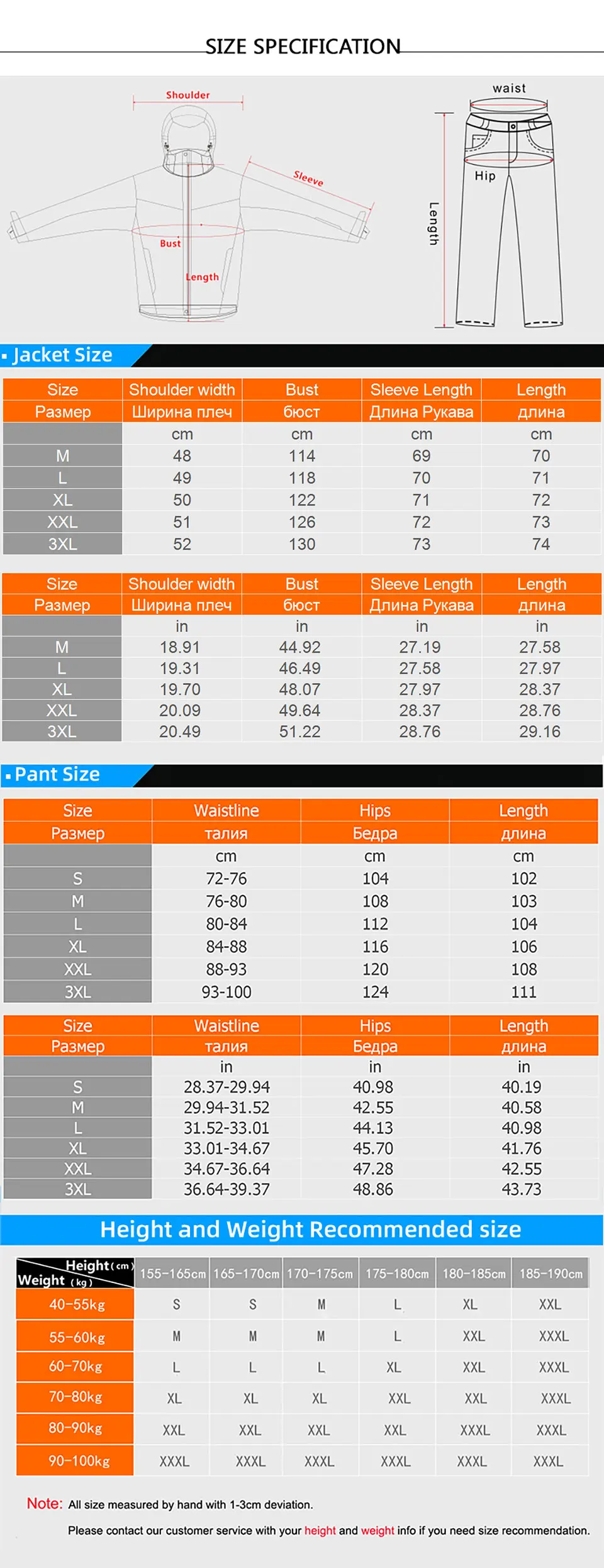 Если вы хотите купить куртки и брюки разных размеров, пожалуйста, оставьте сообщение после размещения заказа. Например, если вы хотите купить куртку размера L, брюки размера XL, закажите комплект размера L и оставьте сообщение: куртка размера L, брюки размера XL, Я проверю ваши требования и отправлю их для вас, спасибо! Из-за ограничения способов доставки, для клиентов в некоторых странах и регионах, лыжные костюмы больших размеров (например, XXL и XXXL) будут разделены на две упаковки для доставки. Куртки и брюки будут в разных упаковках. Порядок таможенного контроля отличается. Время доставки каждой посылка может отличаться, клиенты, которые возражают, пожалуйста, покупайте с осторожностью!