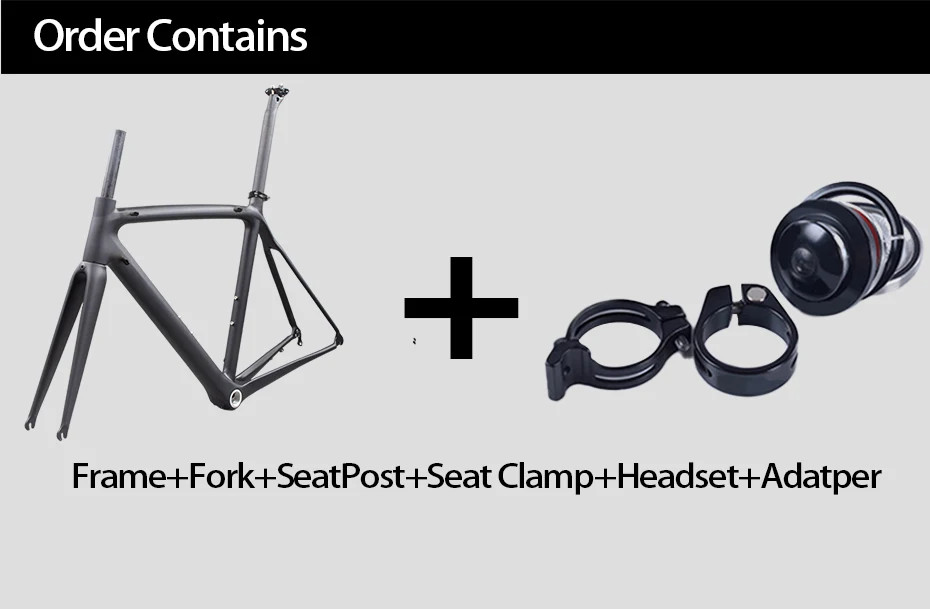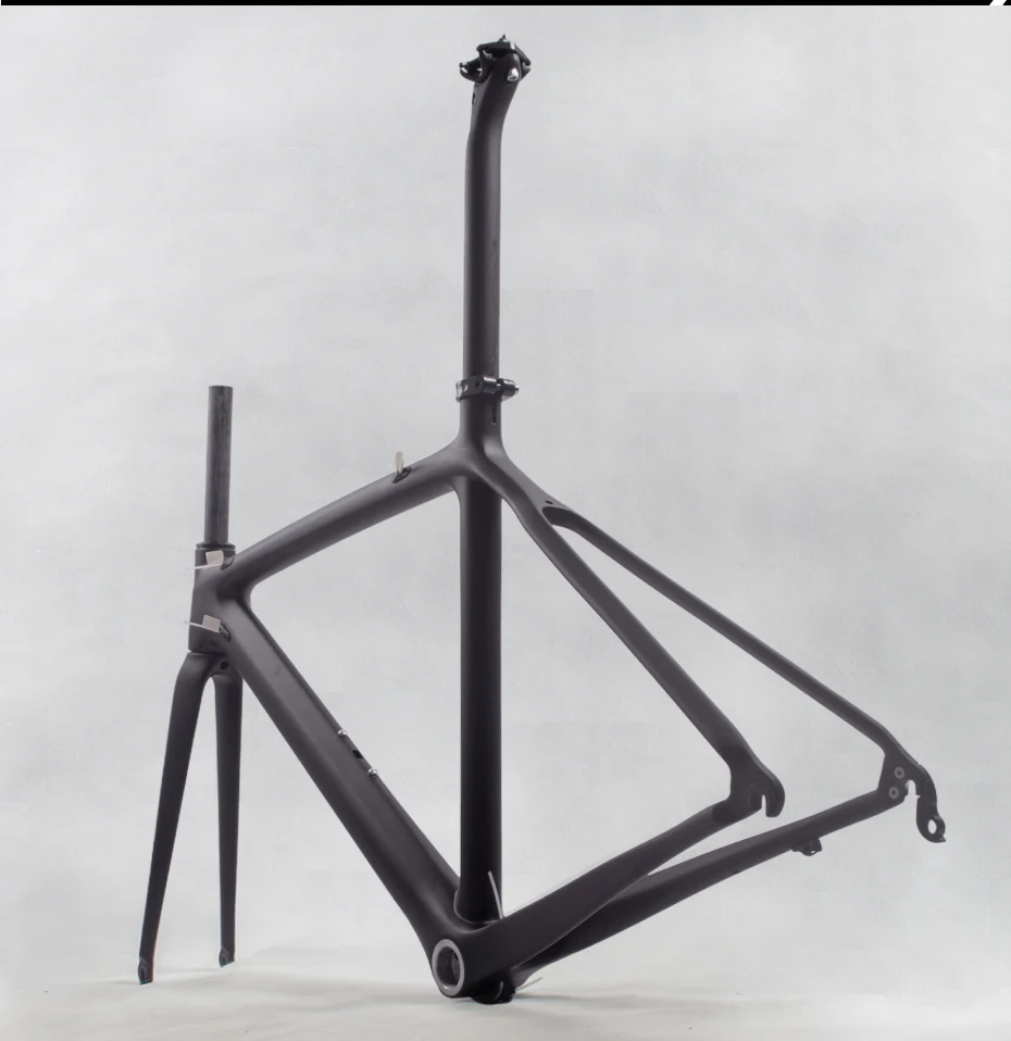 Тип: 700C карбоновая рама для дорожного велосипеда; Материал: углеродное волокно T800; Доступные размеры: 700C для 500 мм, 530 мм, 550 мм; Рекомендуемая высота: 500 мм (165-175 см),530 мм (175-185 см),550 мм (185-195 см); Вес оправы: 980 г +/-50 г для 530 мм; Вес вилки: 350 г +/-20 г; Вес Подседельный штырь: 250 г +-10 г; Нижний Кронштейн: BSA(68 мм); Максимальная нагрузка: 150 кг; Подходит для шин: 700C;Max 23C; Подходит для ступицы: спереди 100x9 мм; Сзади 130x9 мм; Подходит для гарнитуры: Топ 1-1/8 (41,8 мм) вниз 1-1/2(52 мм); Подходит для переключателей: Di2 и механический; Размер сиденья: 31,6x350 мм; Размер зажима сиденья: 34,9 мм; Тормозная система: V тормоз; Orader содержит: раму + подседельный штырь + вилку + гарнитуру + зажим сиденья + кольцо;