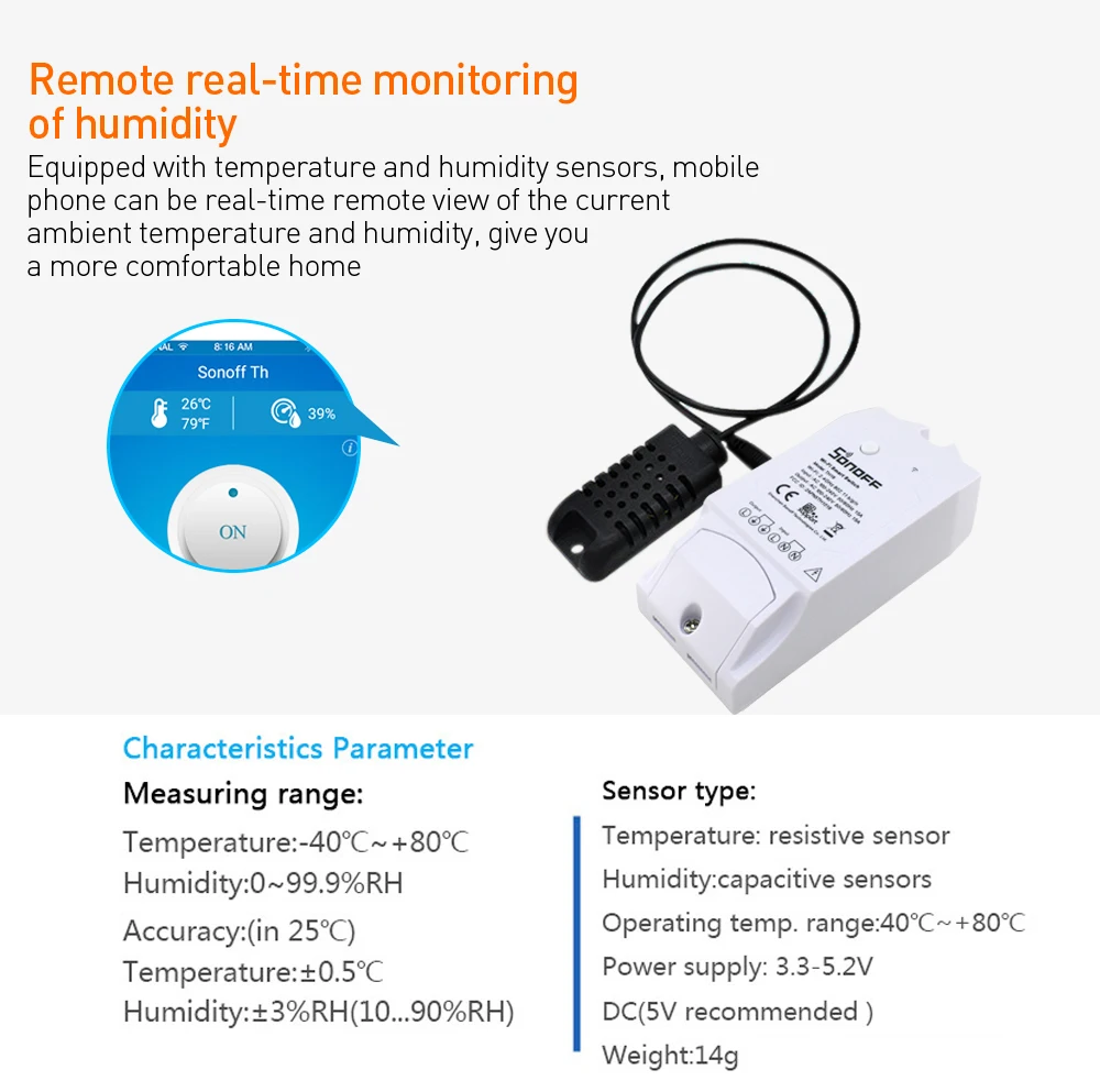 SONOFF TH16 умный Wifi переключатель температуры и влажности монитор с датчиком Am2301 Ds18b20 Si7021 водонепроницаемый зонд Google Home