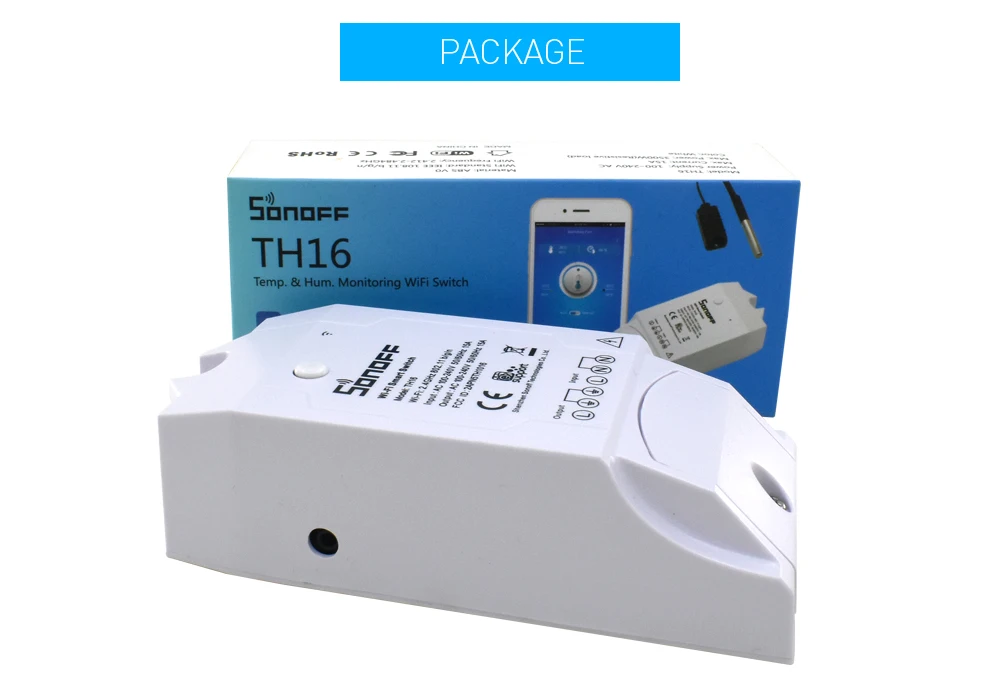 Название бренда: Sonoff Название продукта: Sonoff th16 Управляемые линии: 1 способ Вес изделия: 83 г Метод управления: приложение для телефона Размер изделия: 115*53*33 мм Метод передачи: Wi-Fi связь Операционной Напряжение: AC 90-250V 50 / 60HZ Терминальная Платформа: для los / Android Максимальная нагрузка: 15А/3500 Вт