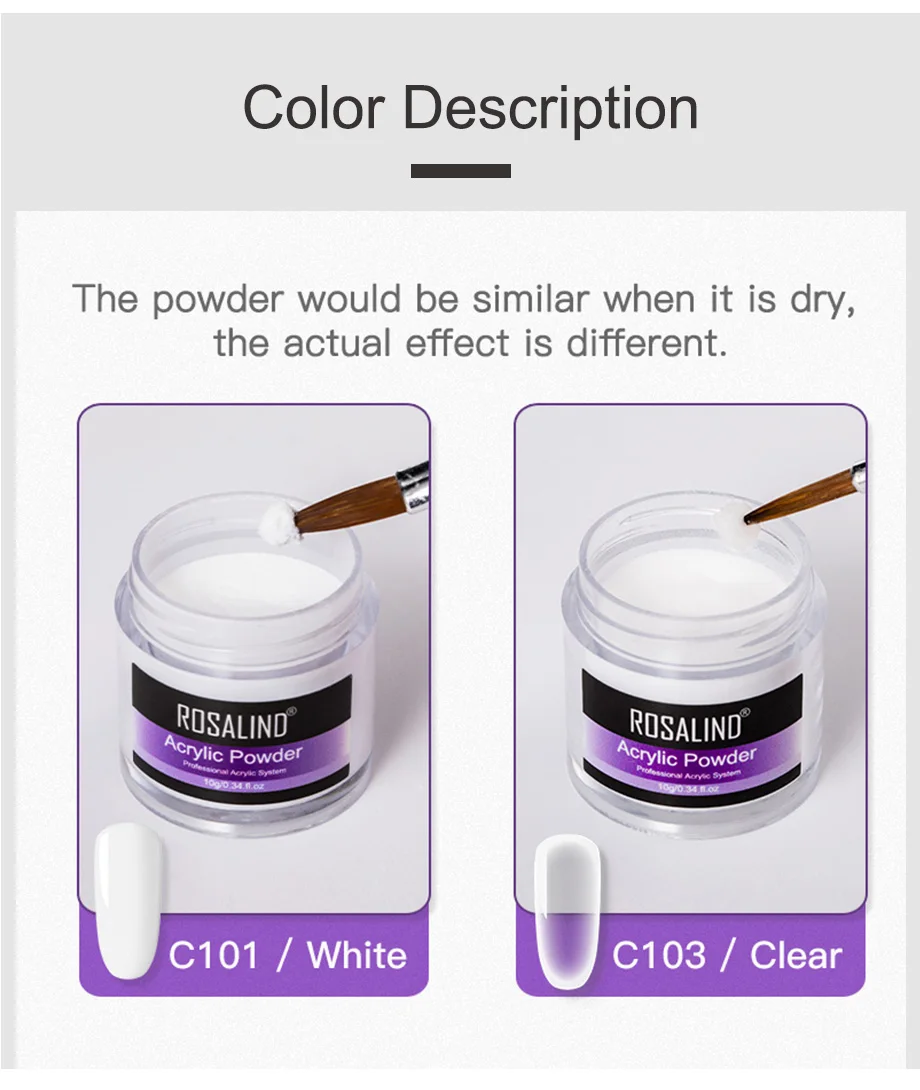 ROSALIND акриловая пудра, Кристальный дизайн ногтей, советы по конструированию, прозрачный акриловый порошок для ногтей, маникюр, 10 г розовый, белый, прозрачный Спецификация: Товар в наличии, заказывайте свободно. Цвет: белый, розовый, прозрачный Особенности: 100% новый бренд. Акриловый порошок для создания фантастического кристального эффекта. Подходит для использования с УФ-гелем, акрилом и т. д. Создание красивых ногтей для долговечных сверкающих кончиков ногтей. Профессиональный инструмент для дизайна ногтей для техника для ногтей. Подходит для профессионального маникюрного салона, школы нейл-арта/колледжа, художника нейл-арта и личного/домашнего использования, оптовой продажи и т. д.