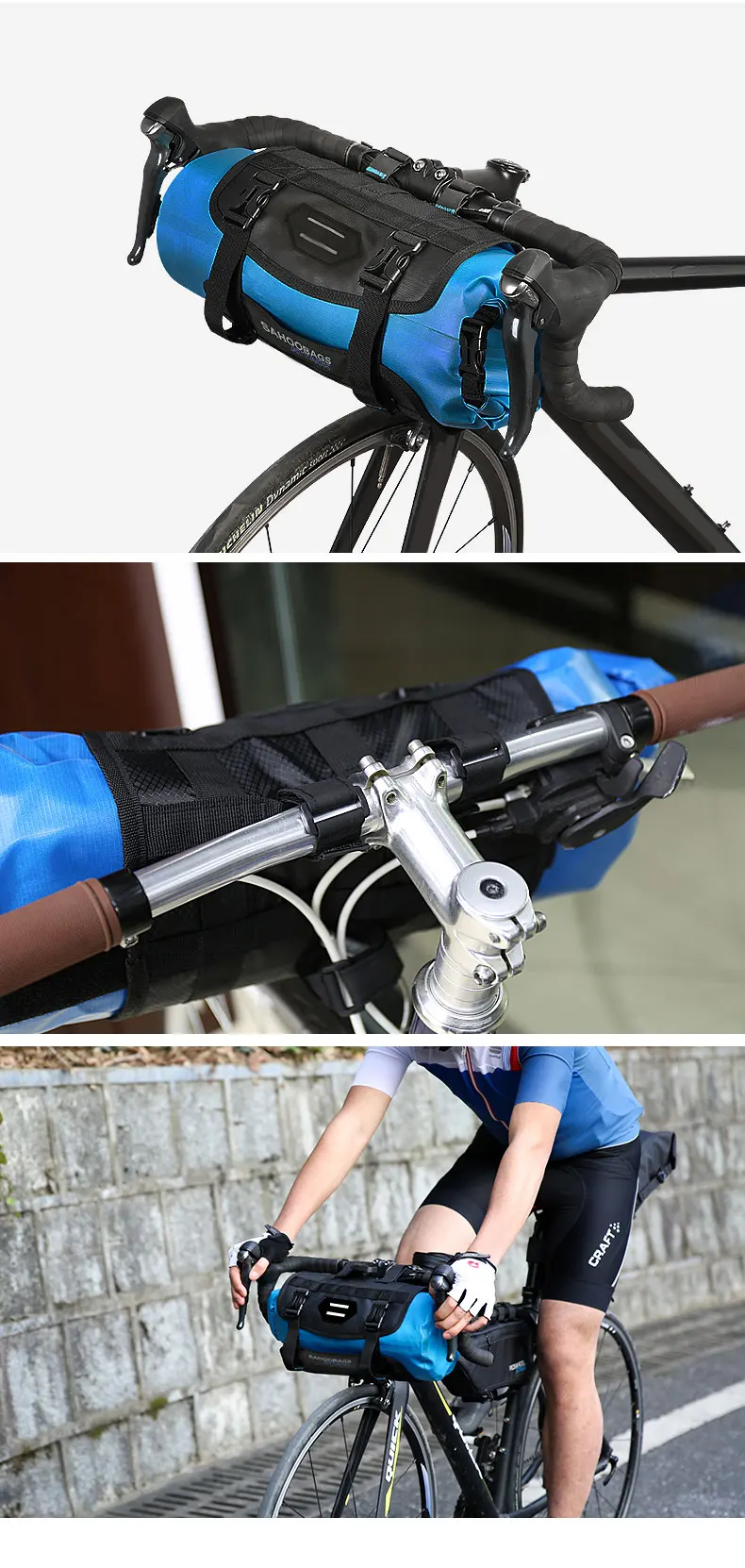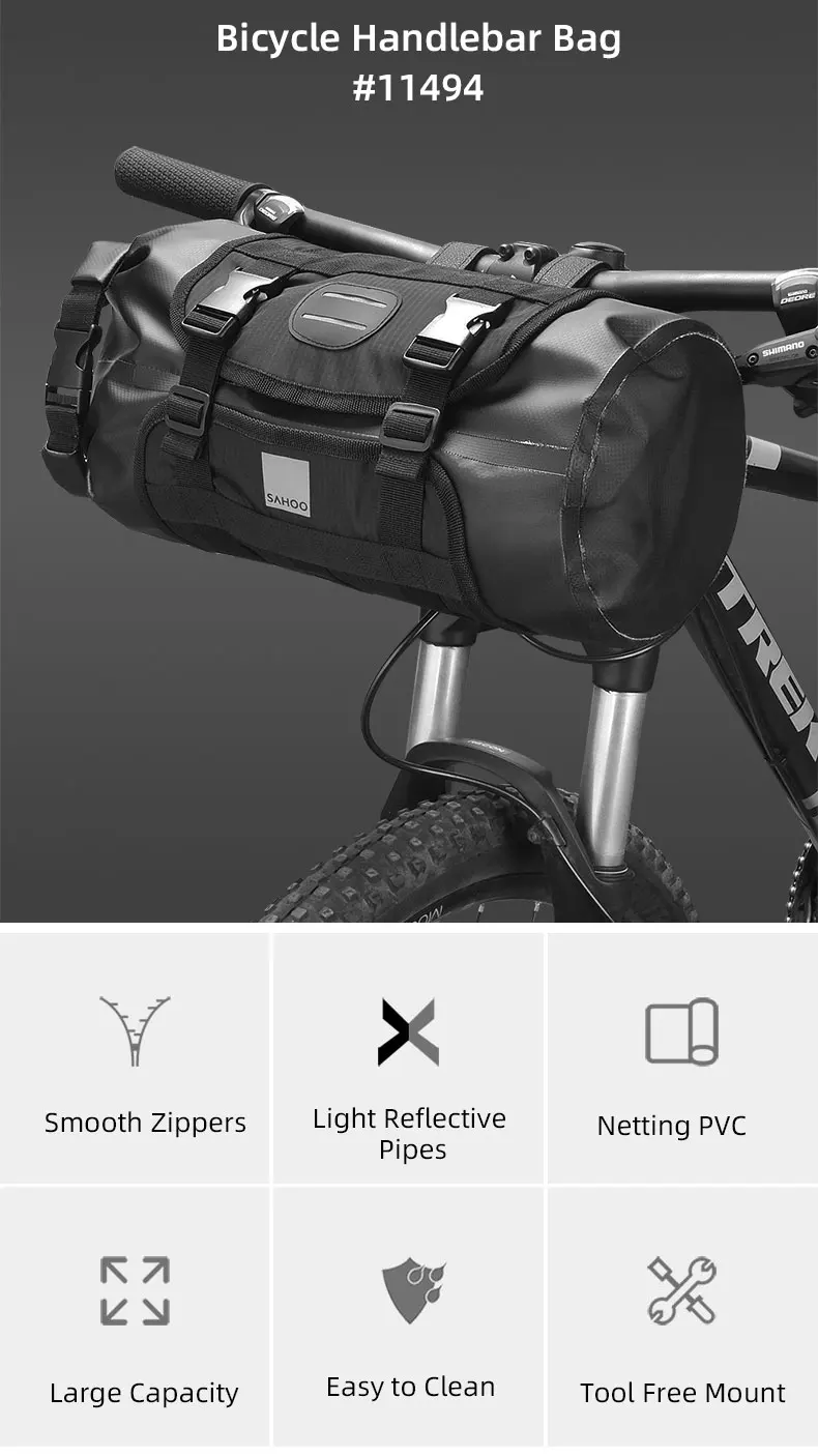Эта сумка имеет водонепроницаемый плотный материал с проклеенными швами На стыках, 100% водонепроницаемость сохраняет предметы внутри сухими в дождливую погоду. Конструкция roll-верхней части делает его регулируемым объемом 3-7 л для удовлетворения конкретных потребностей хранения и держать нагрузку в балансе. Сухая сумка отстегивается, крепится к креплению крючком-висячим ремнем, легко и удобно снимать для быстрого доступа. Надежный монтажный ремень надежно фиксирует положение на рукоятке.