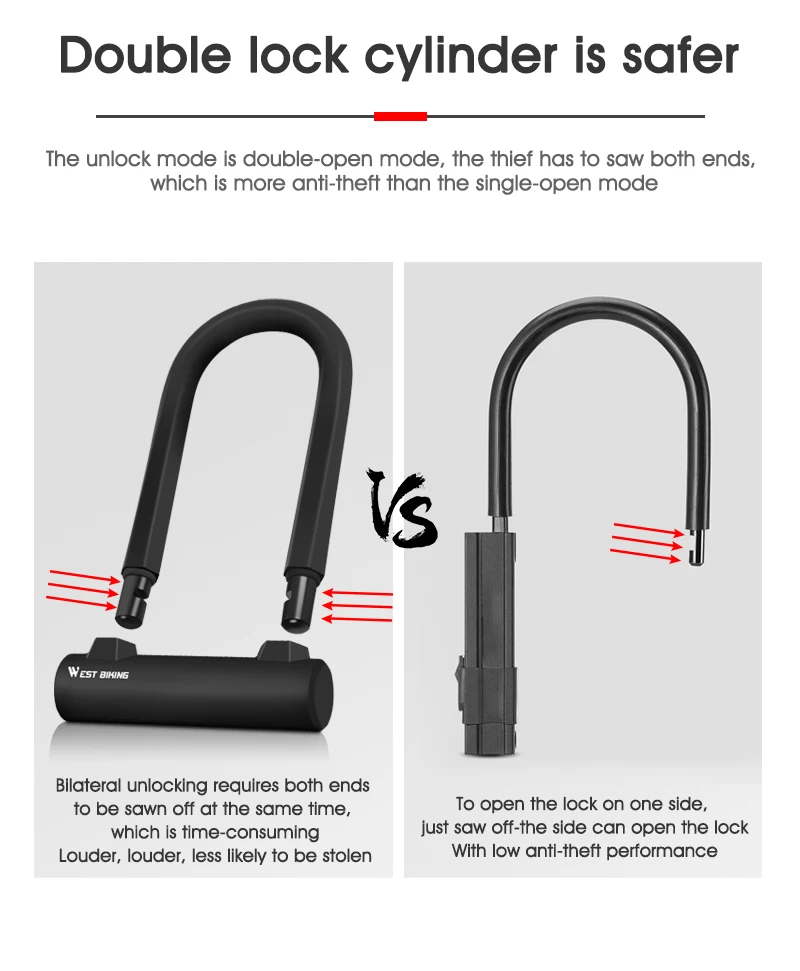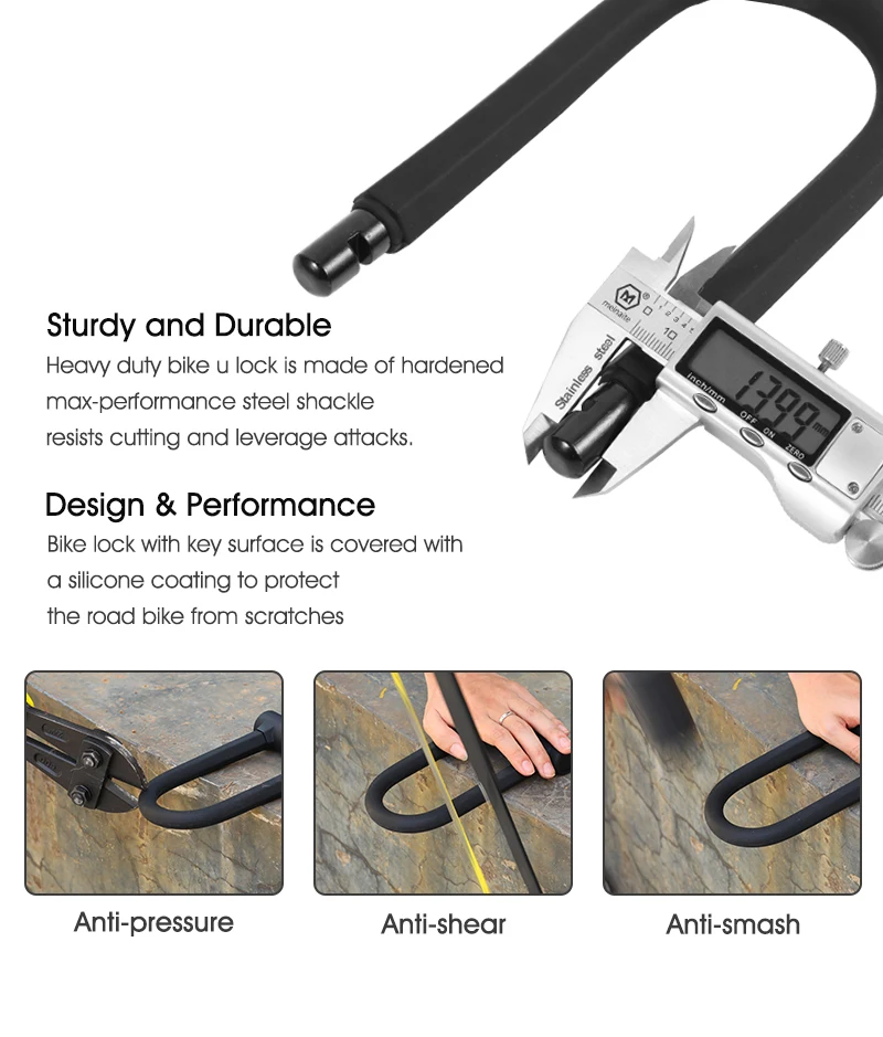 -Для лучшей защиты от кражи 14 мм скоба, 4 мм ПВХ покрытие -Одностороннее разблокирование, простота в эксплуатации. -Корпус замка из цинкового сплава, поставляется с закрытым пылезащитным покрытием. (Автоматически закрывается, когда ключ вытягивается. Защита сердечника замка и долговечность.)