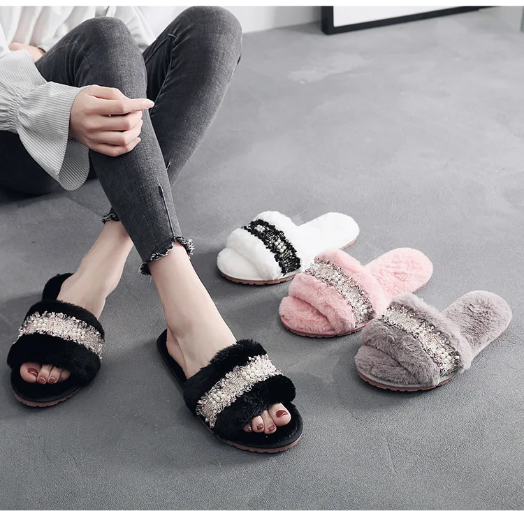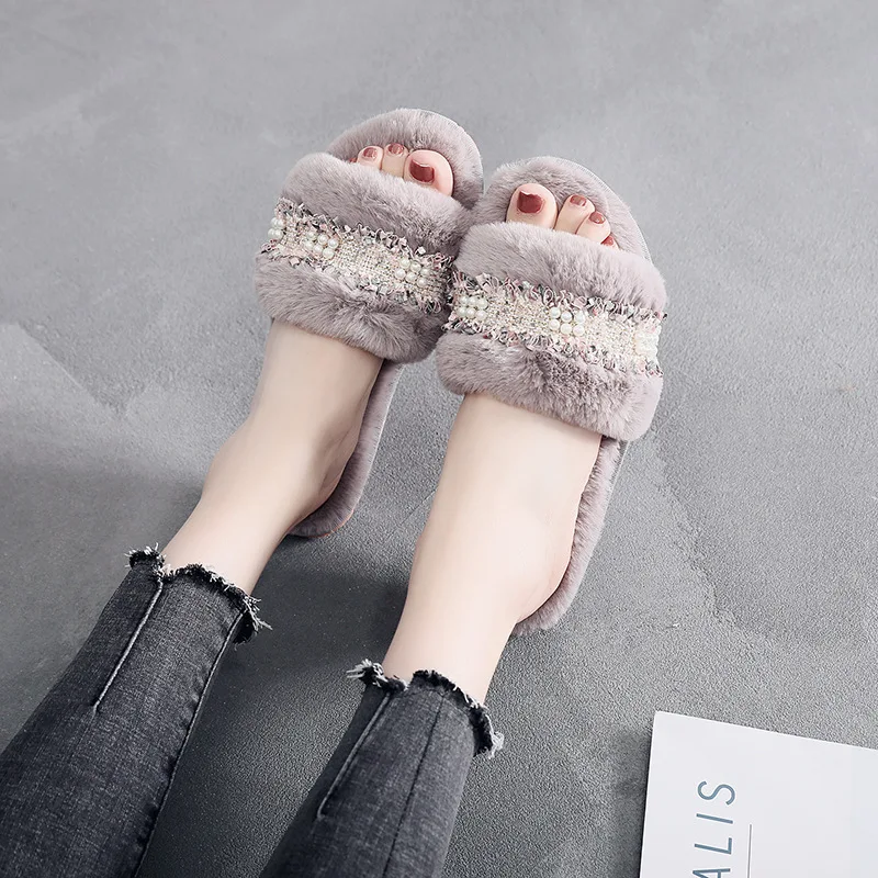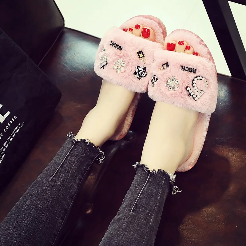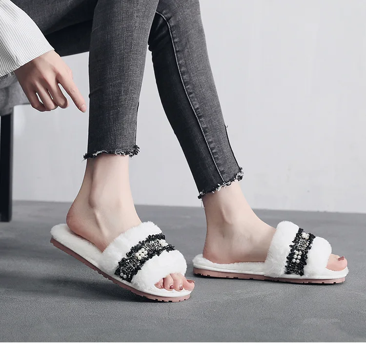 Зимние женские домашние тапочки; Домашняя обувь; Коллекция 2020 года; Модная теплая обувь с искусственным мехом; Женские слипоны на плоской подошве; Домашние тапочки; Размеры 35-40