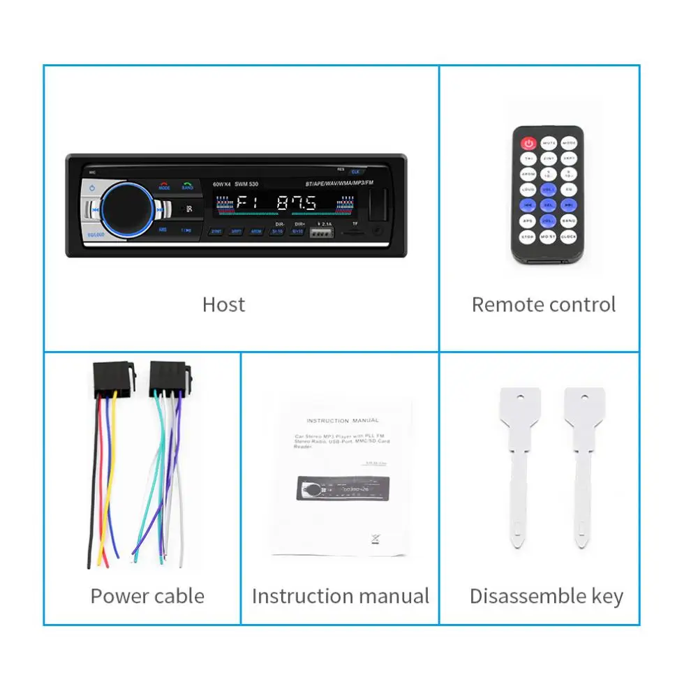 -Aux: можно подключить мобильный телефон, MP3, MP4, MP5 и другие аудио через машинный вход к автомобильному рожку для воспроизведения.