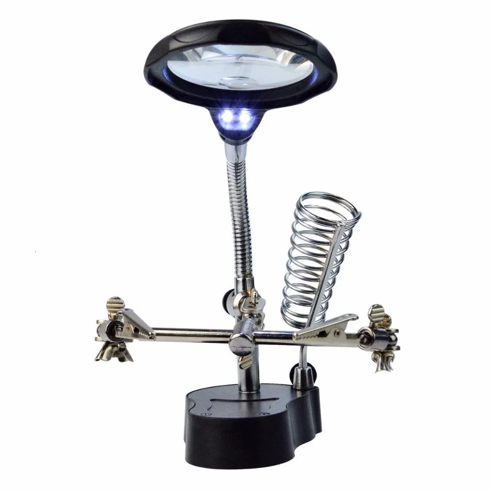 Ручная Лупа со светодиодной подсветкой, Вспомогательный зажим, лупа для рабочего стола, увеличительное стекло, подставка для паяльника третьей руки, инструмент для ремонта