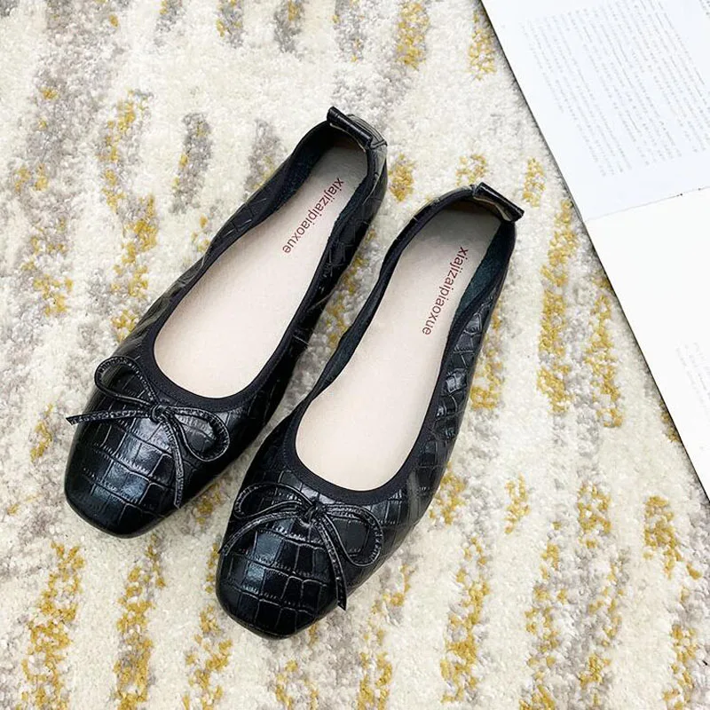 Новое поступление 2020 года; Женские балетки из натуральной кожи на плоской подошве; Женская обувь с квадратным носком и бантом; Цвет абрикосовый, черный, серый; Женские X909-2