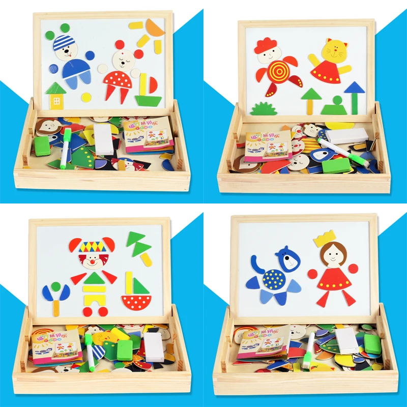 * New Kids Wooden Reversible Magnetic Puzzle Drawing Board