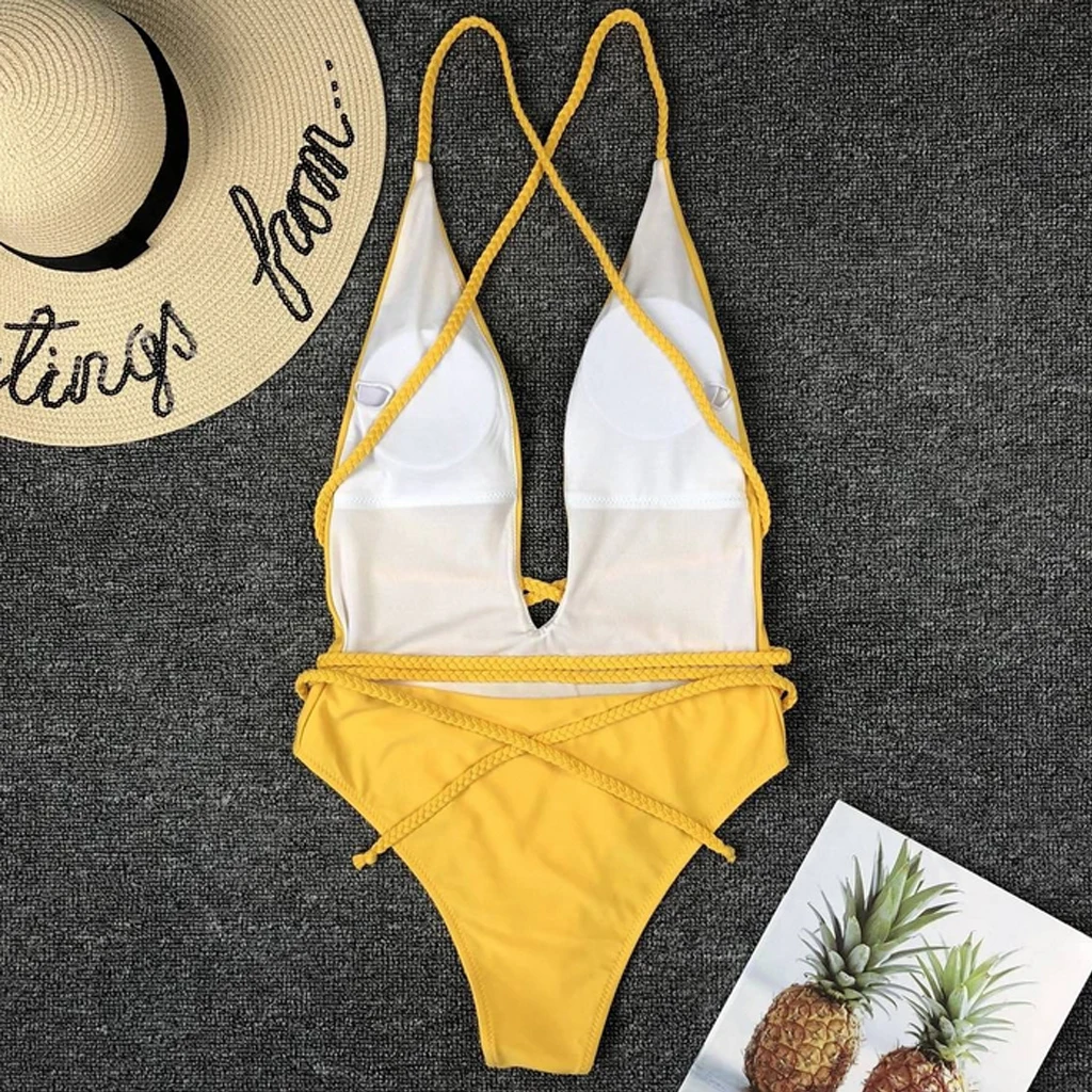 Hirigin, сексуальный бандажный Цельный купальник, новинка 2019, купальник с v-образным вырезом, одноцветные стринги, бикини, женский купальный костюм, пляжный купальный костюм