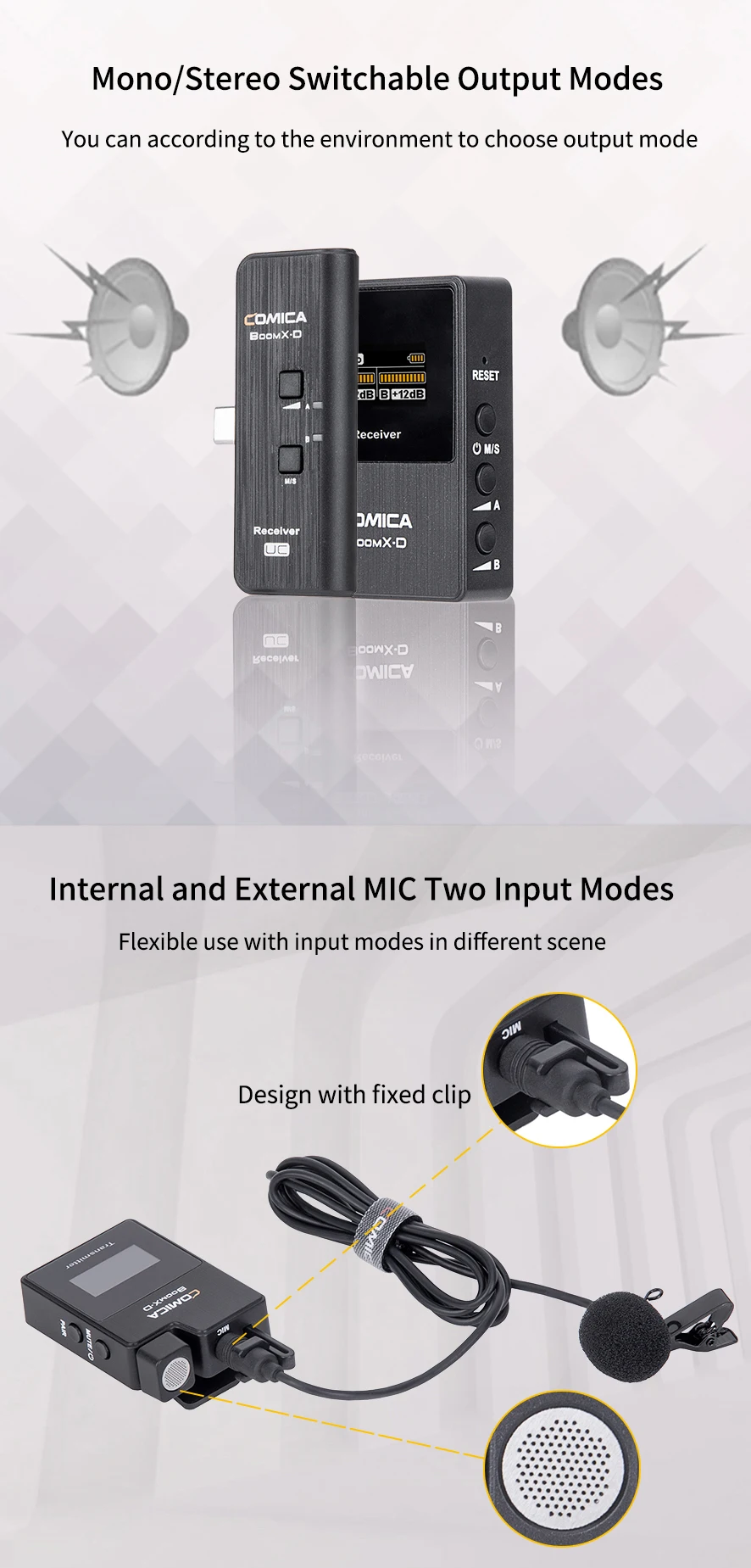 COMICA BoomX-D 2,4G цифровой 1-Trigger-2 беспроводной микрофон. Чтобы обеспечить вам хороший опыт использования, пожалуйста, внимательно прочитайте эту книгу перед использованием и правильно установите и действуйте.