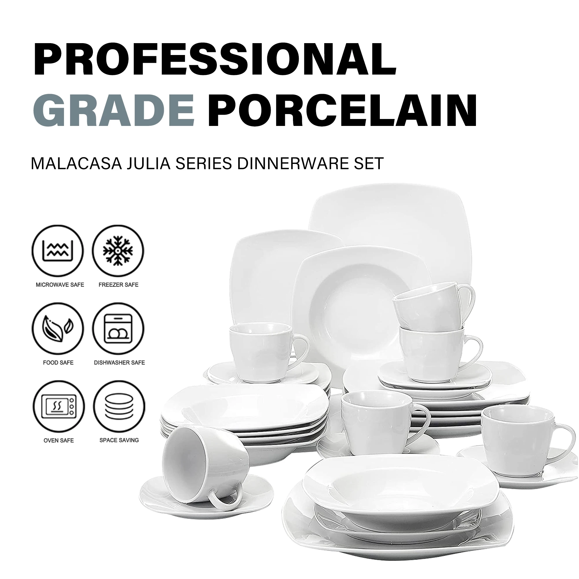 Здоровый и прочный фарфор, нетоксичный и безвредный, более длительное время использования. Выдерживает экстремальные температуры при низкой и высокой температуре, можно использовать в микроволновой печи и в посудомоечной машине.