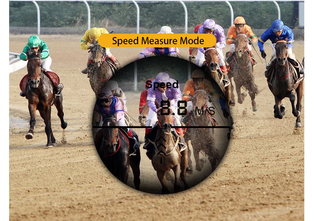 Измерение одного расстояния: цель на целевой объект и короткое нажатие кнопки питания, чтобы начать измерение. Результаты измерений будут отображаться на объективе.