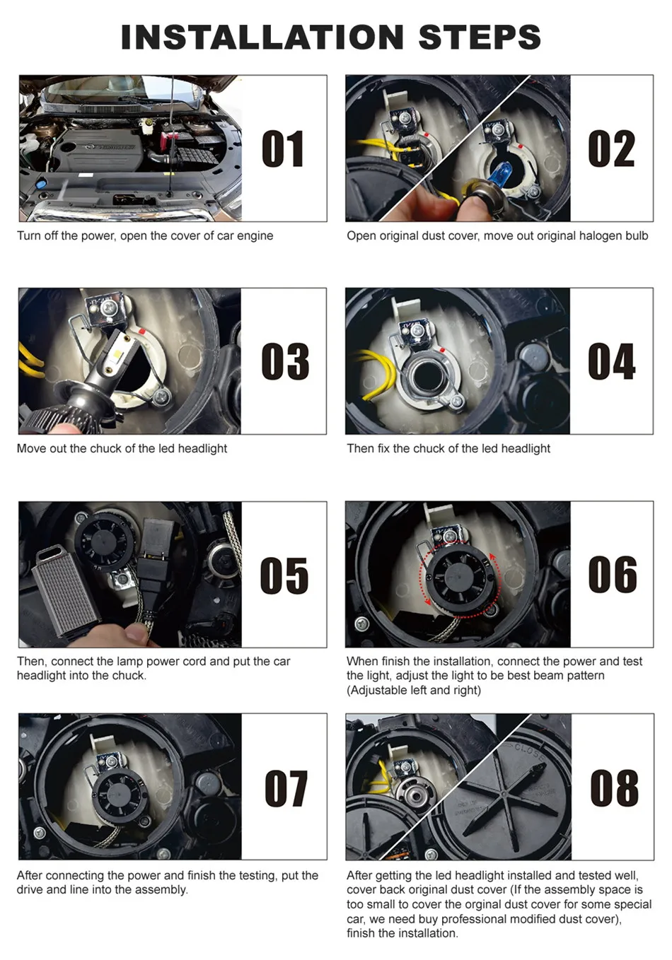 Особенности: Вход (A) : 1.7A-2.4A (Чип на плате) Срок службы: >30000hrs Угол луча: 360 градусов, без слепых Мощность: 72 Вт Цветовая температура: 3000K/4300K/6500K Люмен: 10 лм/комплект (5 лм/лампа) Рабочее напряжение: 9-32 В постоянного тока Рабочая температура: -40 °C ~ + 85 °C Теория рассеивания тепла: авиационный алюминий 606 Подходящие модели автомобилей: Этот продукт подходит для более чем 98% моделей автомобилей Как правило, реальная мощность будет 80 ~ 90% теории мощности, это не выходит за пределы нормы. Основные преимущества: Три цвета Четыре режима: 6500K белый, 4300K теплый белый, 3000K желтый, желтый предупреждение о вспышке Подходит для различных погодных условий: 6500K белый для нормального дня, 4300K теплый белый для дня тумана, 3000K желтый для дождливого дня, свободно переключается Малый размер корпуса, легко установить; Plug & Play (может быть установлен в течение 10 минут прямо из коробки!) Более 30000 часов яркого непрерывного светильник. Высокое качество, металлический адаптер Идеальный мощный чип CSP, 360 градусов чистый луч без слепой зоны 6500K холодный белый, светильник лампы близок к дневному времени, это самый удобный светильник для человеческого глаза 4300K Желтый цвет освещения идеально подходит для вашего автомобиля в дождливом состоянии или в другом плохом состоянии Посылка включает в себя: 2x светодиоды с чипом CSP, автомобильная светодиодная лампа для фары Примечание: H4: дальний/ближний свет, H7 / H8 H9 H11 / 9005 HB3 / 9006 HB4: Одиночный луч Пожалуйста, проверьте Тип вилки и размер вилки, которые могут подойти для вашего автомобиля перед покупкой