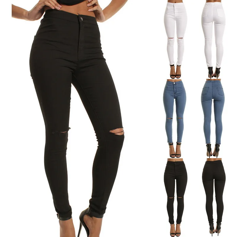 Slim Fit. Эластичные Обтягивающие Брюки с рваными вырезами на колене. Два задних кармана
