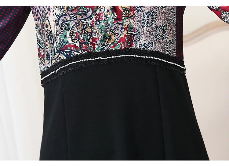 Spring New 2019 Women Floral Print A-Line Dress Women Round Neck Beading Fake Two Pieces Patchwork Mini Dresses Vestido Feminina