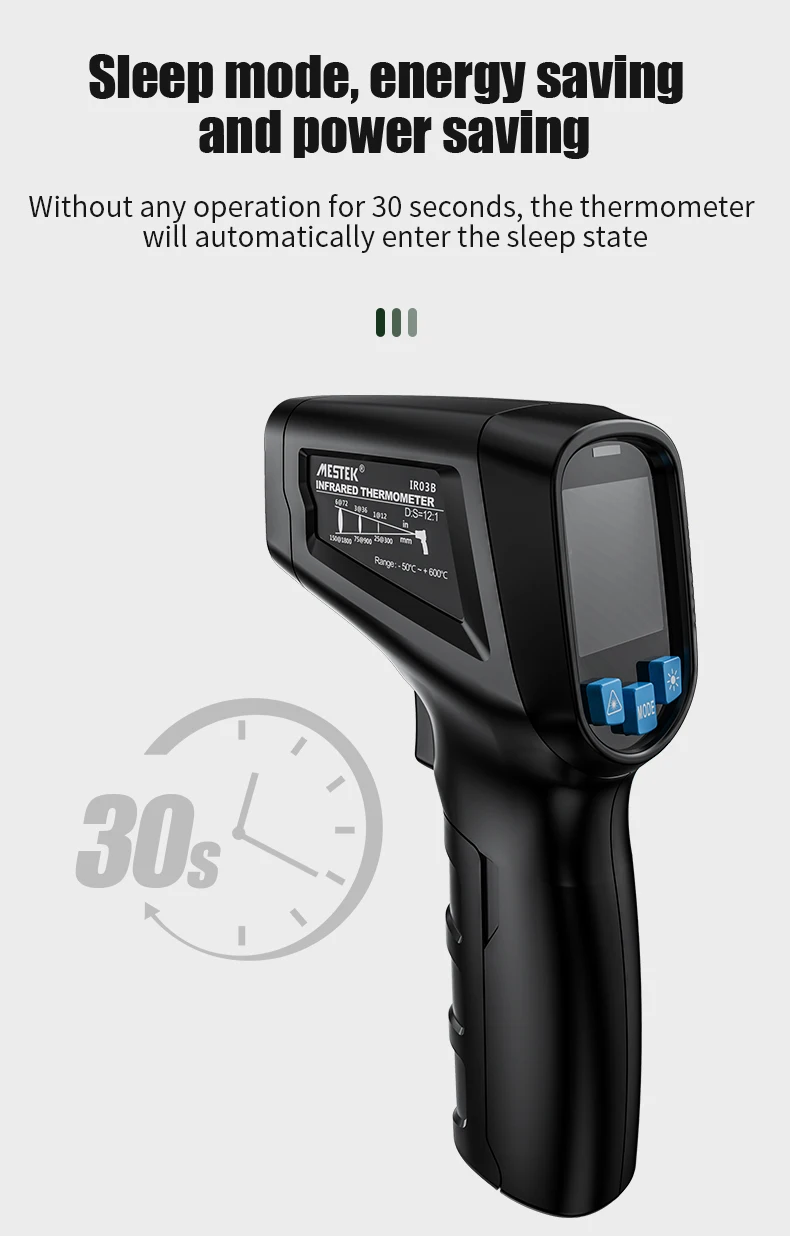 30 секунд без какой-либо операции, термометр автоматически войдет в режим сна