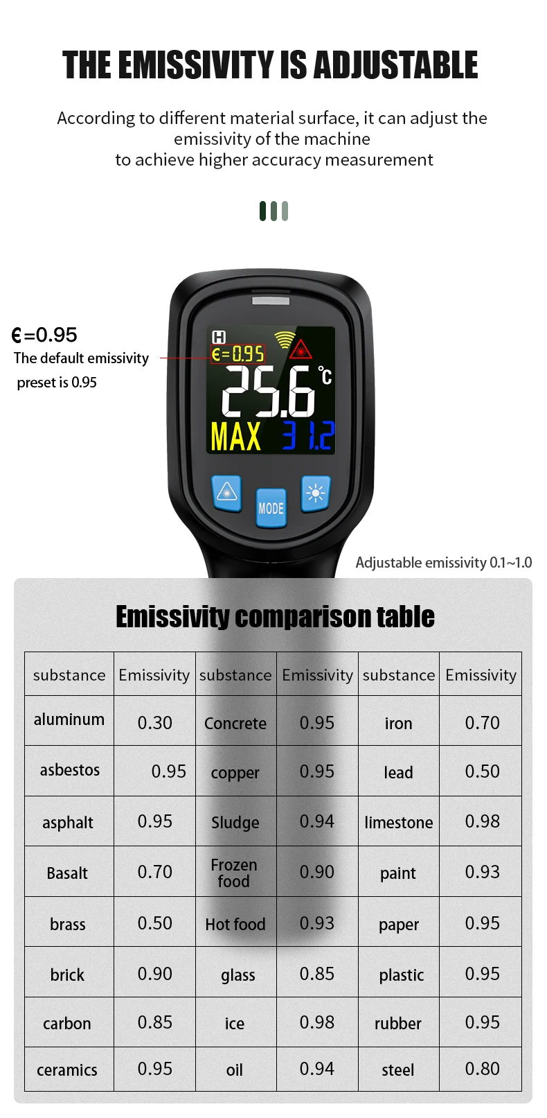 В соответствии с различной поверхностью материала, он может регулировать эмиссивность станка для достижения более высокой точности измерения