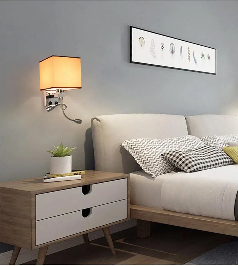 Современная прикроватная тканевая художественная настенная лампа маятниковая рукоятка Led спальня гостиная коридор отель настенный светильник двойной переключатель и светильник