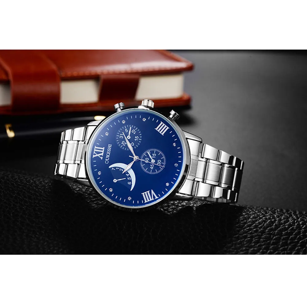 Полумесяц шесть игл стальной пояс мужские часы водонепроницаемые часы мужские