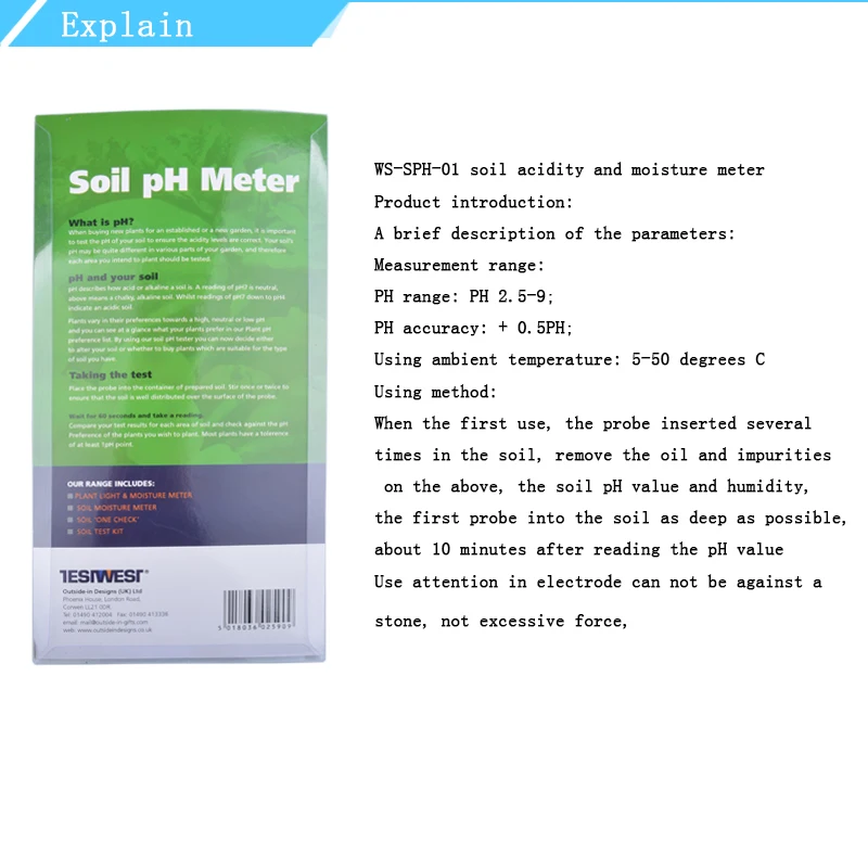 1. Измерение pH почвы, насколько это возможно, для глубокого зонда в землю и зонда верхней части около 1 см. 2. В таблице 2,5-9 числовых, числовая 7 основных является нейтральным, чем меньше количество показывает, что чем больше кислотность, пожалуйста, отрегулируйте значение pH почвы в соответствии с сортами растений. 4. Пожалуйста, обратите внимание, что вставляйте электроды, не касаясь камня, не слишком сильно, в противном случае легко повредить электрод, очистить электрод после использования.
