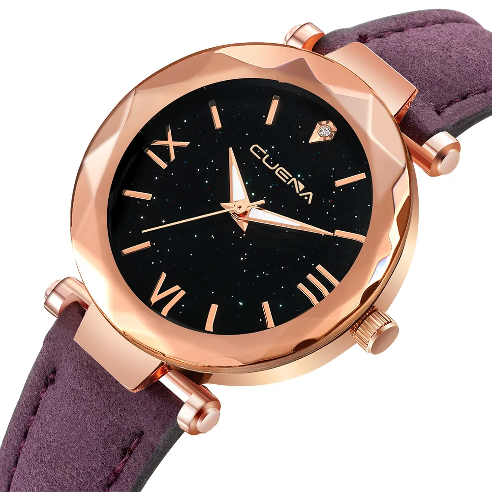 Fashion Women 's Leather Band CUENA Analog Quartz Diamond Wrist Watch Watches