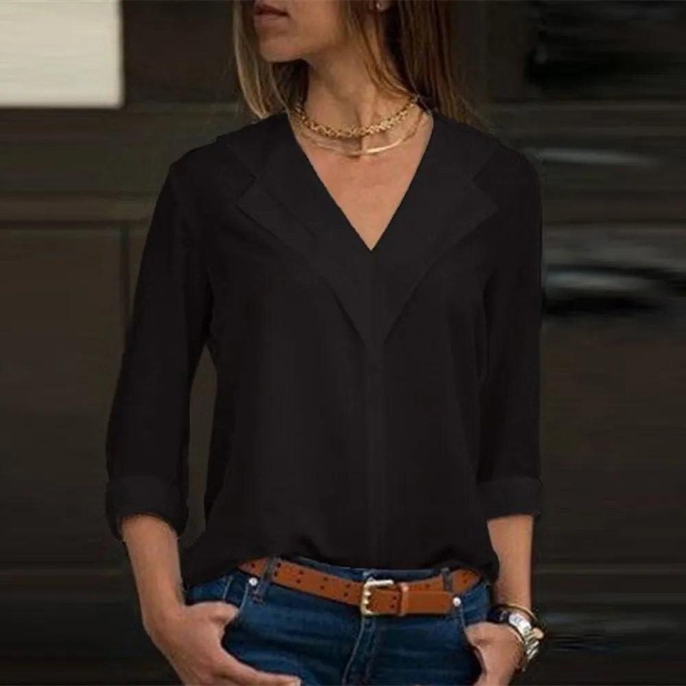 Модная женская шифоновая Однотонная футболка для офиса, Женская однотонная блузка с рукавами-крылышками, Топ