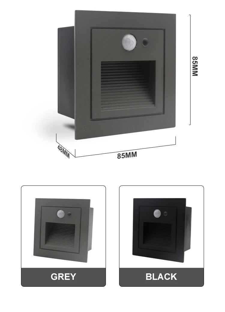 3 Вт круглая: 85*85*30 мм; 3 Вт квадратная: 86*86*30 мм