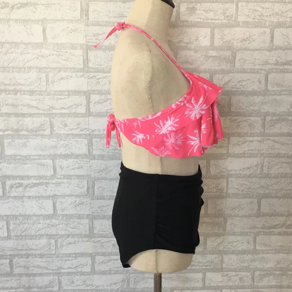 Двухъярусная оборка с популярным рисунком пальмы печать листьев очень модная, шикарная и великолепная, которая акцентирует ваше похудение, соблазнительные и флиртные изгибы.