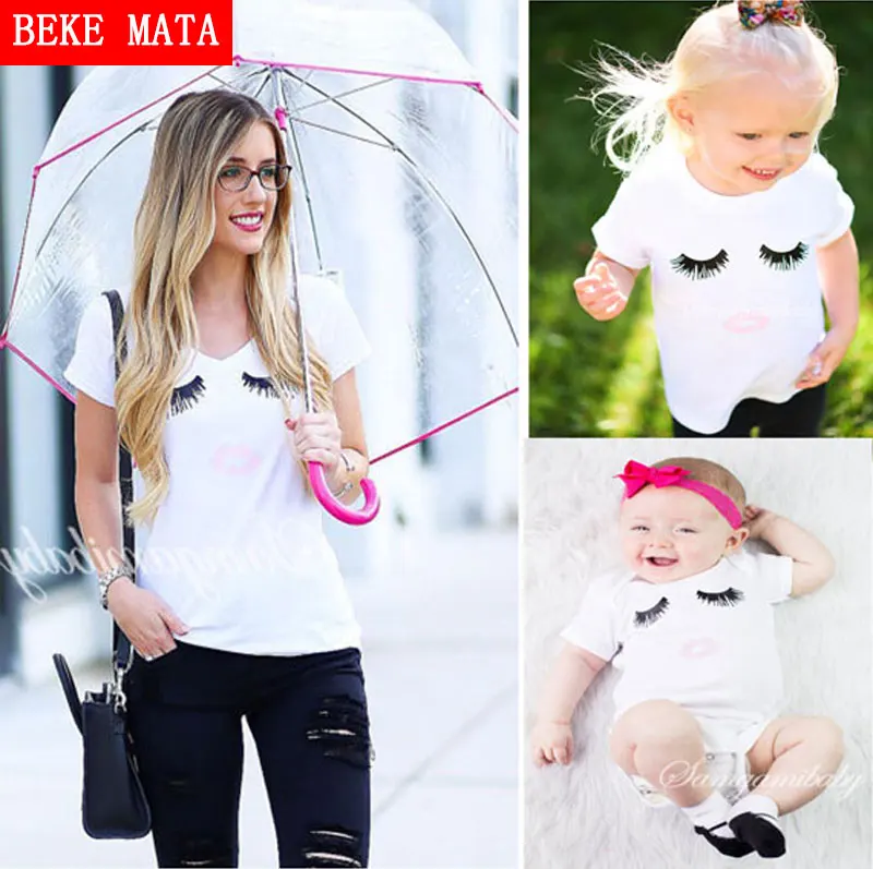 Одинаковая одежда для мамы и дочки, одежда для малышей, лето 2019, новая футболка с принтом «застенчивый глаз», комбинезон, комплект одежды для всей семьи, одежда для мамы и дочки