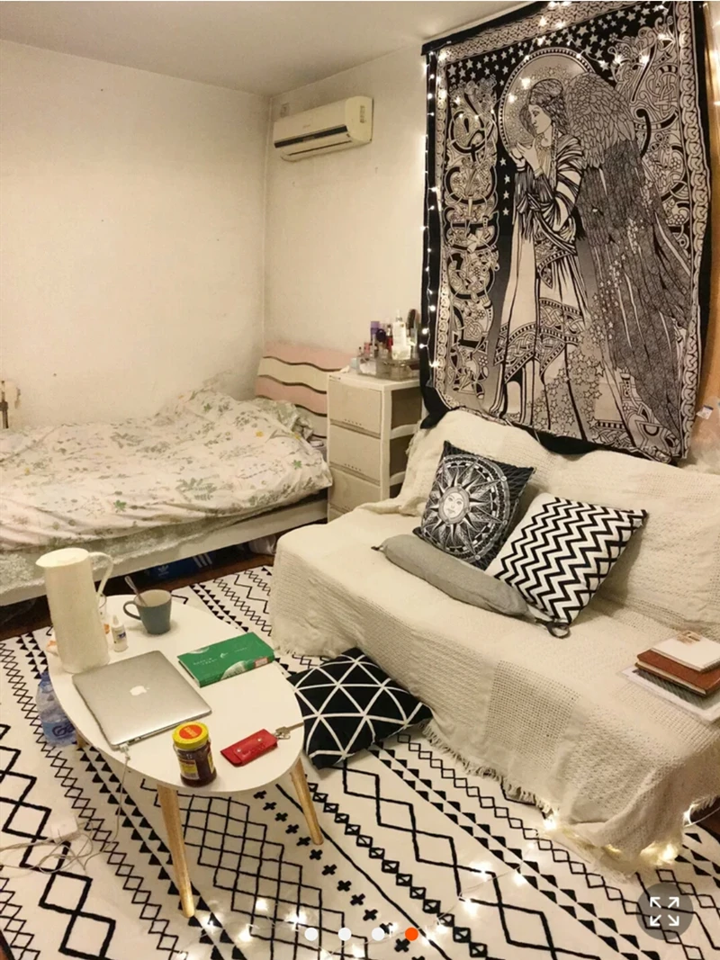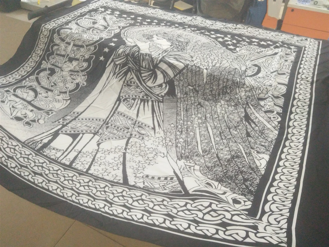 【Updating в 2019/09/17 】 1. Мы улучшили изображение и материал. Настоящий гобелен имеет четкие линии, как показано на фотографиях. Цвет черный. 2. Мы используем лучший полиэфирный материал. Размер M весит 200 г, более плотная и лучше драпированная ткань. 3. Размер M ширина, это около 140x130 см. Размер L Продольный, это около 150x200 см.