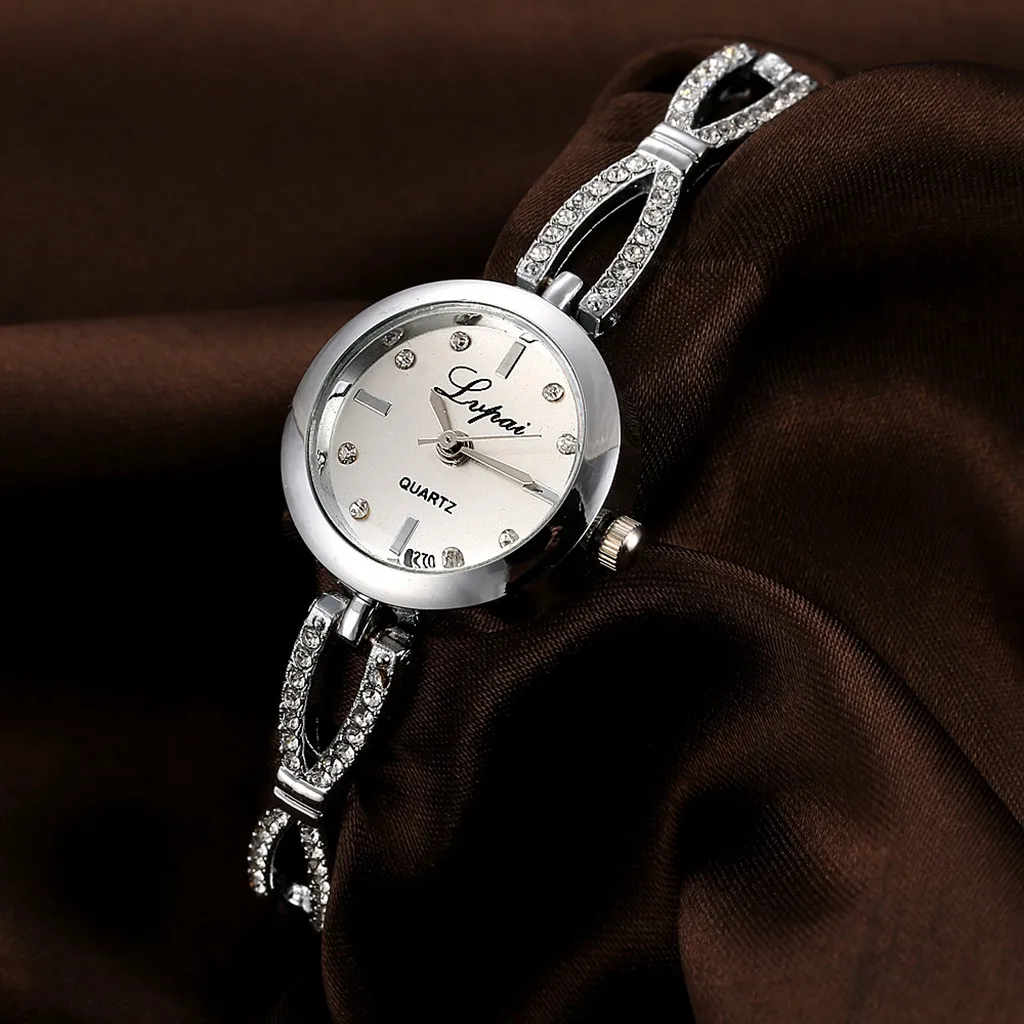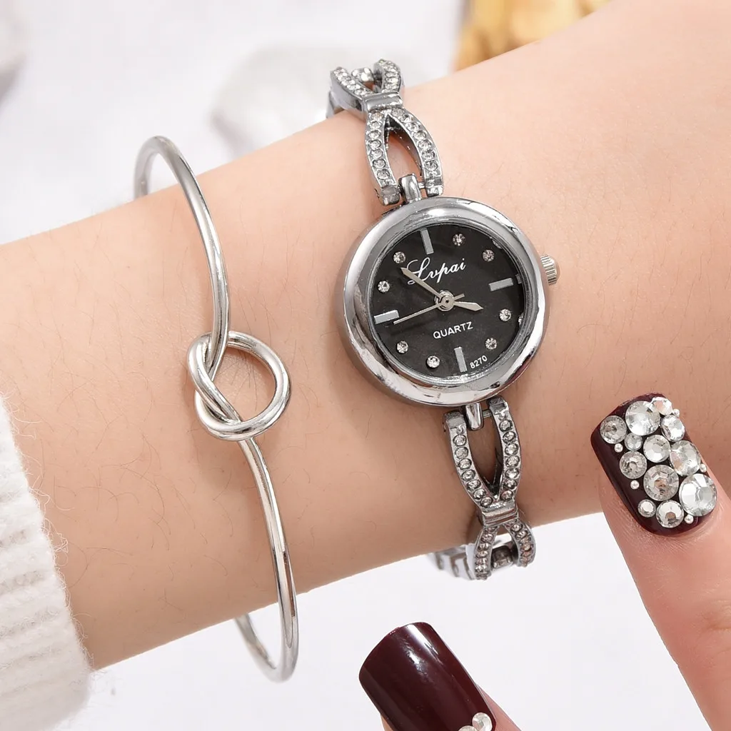 Простой циферблат и ремешок с бриллиантами делают часы прозрачными и темпераментнымиСтильные часы с браслетами, которые дополняют друг друга, чтобы показать ваш темперамент
