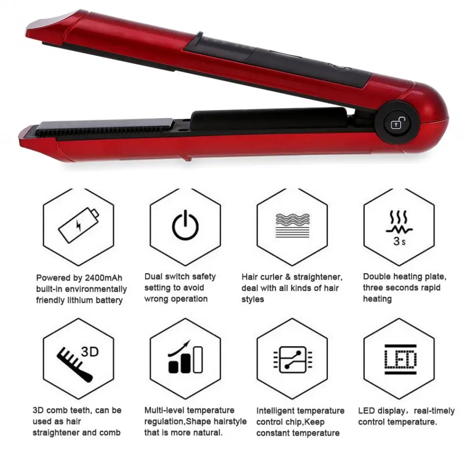 1. Портативная USB зарядка для завивки волос и выпрямителя, беспроводная и интеллектуальная.