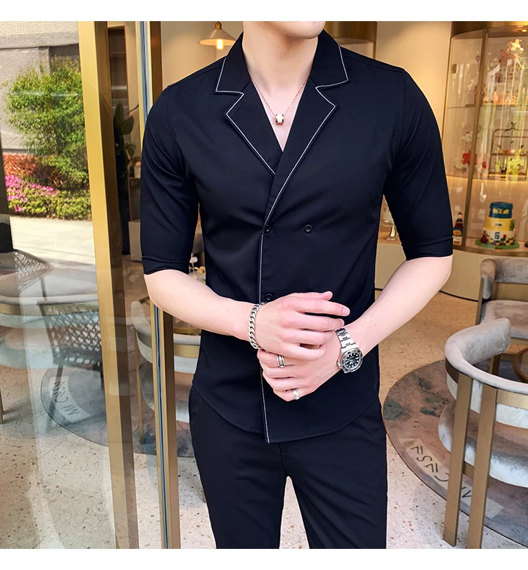 Комплект из двух предметов, топ и штаны, Мужская одежда, двубортные рубашки, мужская рубашка и брюки, Мужская одежда, мужские короткие комплекты, повседневная одежда, 2019