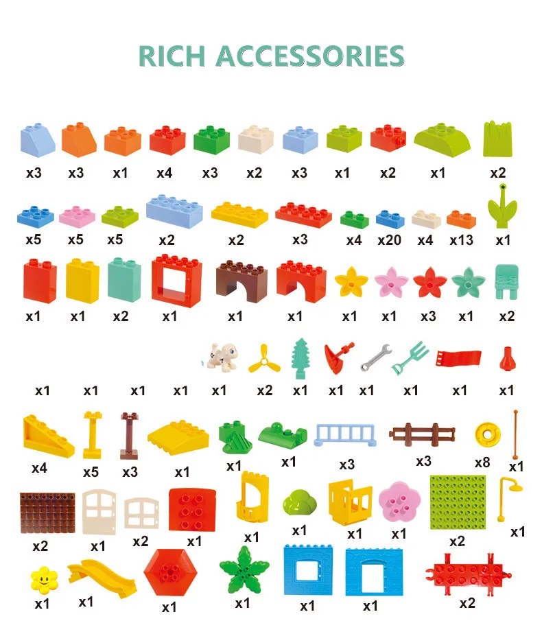 Дорогие друзья, Добро пожаловать в наш специализированный магазин Dsney & i! Большие частицы Happy Valley Park ролевые игры Juguetes для детей О товаре игрушки Juguetes * Совместимость со всеми кирпичами Duplo Brand * 3 модели на ваш выбор, как показано на фото * Количество кирпичей: 60/70/168 шт. * Упаковочный лист: блоки + Инструкция Освещение: Реалистичные и интересные модели Крупные строительные блоки, делают модель более реалистичной Яркий и замечательный цвет, может улучшить познавательные способности ребенка в цвете Экологически чистые материалы АБС без вреда для ребенка Может развивать интеллектуальные и практические навыки вашего ребенка Гладкая поверхность, без вреда для ребенка Нет оригинальной цветной коробки. Мы упакуем в картонную коробку. Для экономии авиаперевозок!